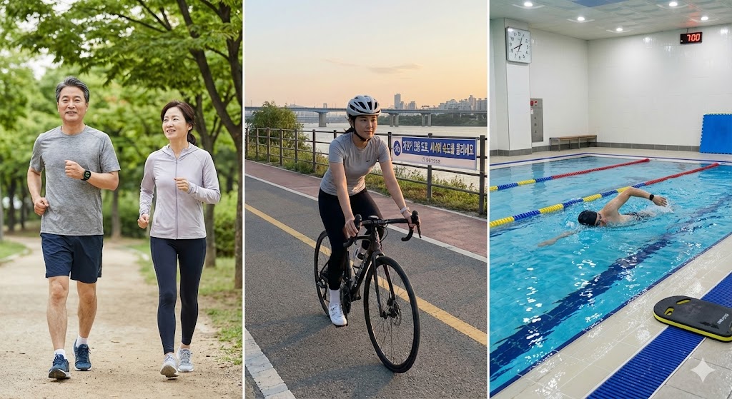 특히 걷기, 자전거 타기, 수영 같은 유산소 운동은 심장과 혈관의 기능을 향상시켜 혈압을 자연스럽게 낮춰줍니다.