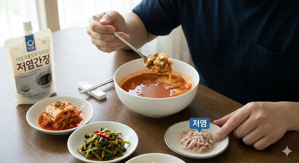 - 김치, 젓갈은 소량만 섭취하고 저염 제품 활용