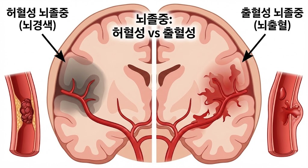 뇌졸중은 크게 허혈성(뇌경색)과 출혈성(뇌출혈) 두 가지로 구분됩니다. 전자는 뇌혈관이 막혀 산소 공급이 차단되면서 발생하고, 후자는 혈관이 터져 뇌 안에서 출혈이 일어나는 유형입니다. 두 유형 모두 몇 분 안에 뇌세포가 손상되기 시작하므로, 뇌졸중 전조증상을 인지하는 것은 생명과 직결되는 문제입니다.