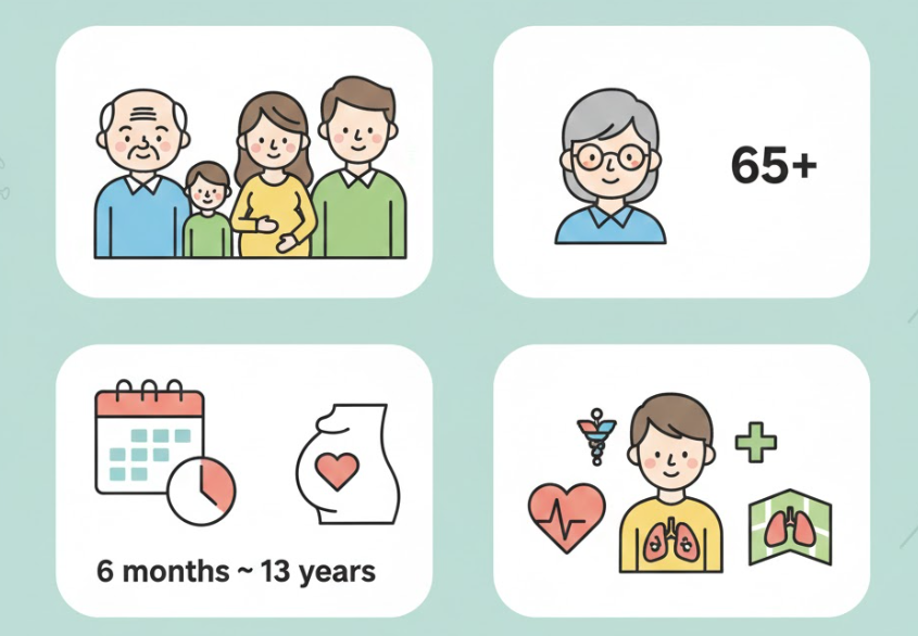 질병관리청이 발표한 2025년 기준, 독감예방접종 무료대상날짜는 다음과 같습니다.