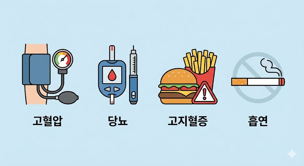 고혈압, 당뇨, 고지혈증 환자 및 흡연자는 평소보다 더 이른 시기에 동맥경화증 초기증상이 나타날 가능성이 높습니다. 이러한 위험군은 작은 변화도 놓치지 않고 정기 검진을 통해 혈관 상태를 관리하는 것이 중요합니다.