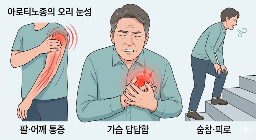 동맥경화증 초기증상은 가슴 답답함, 어지러움, 팔·다리의 혈류 저하 등으로 미세하게 나타나지만 이를 빠르게 알아채면 심근경색이나 뇌졸중 같은 큰 질환을 예방할 수 있습니다. 몸의 작은 신호를 무시하지 말고 생활습관을 바로잡아 혈관 건강을 적극적으로 관리하세요.