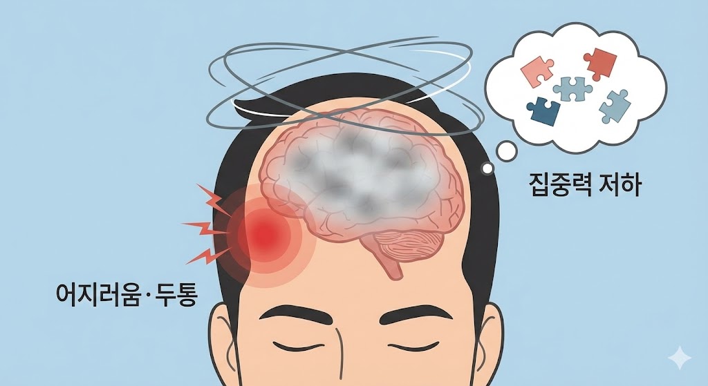 뇌혈류가 원활하지 않으면 일시적인 어지럼증, 멍해지는 느낌, 잦은 두통이 나타날 수 있습니다. 가볍게 넘어가기 쉽지만 반복된다면 혈관건강 이상 여부를 확인해야 합니다.