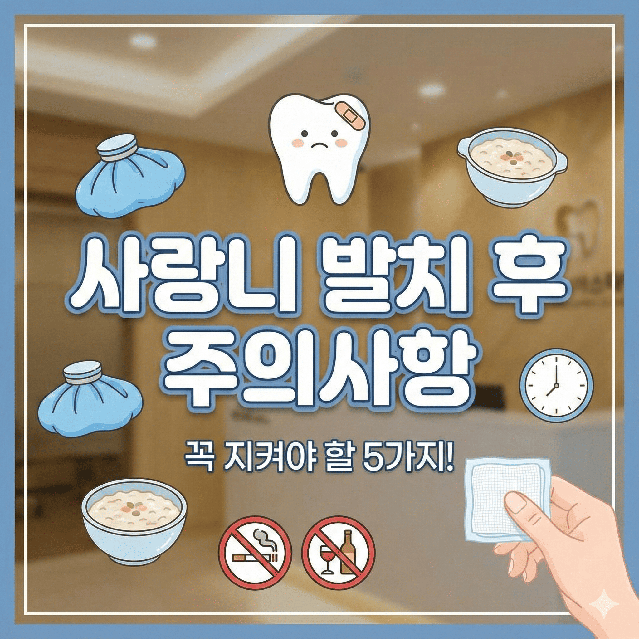사랑니 발치 후 주의사항은 구강 내 상처가 아무는 과정에서 발생할 수 있는 부작용을 예방하고 빠른 회복을 돕기 위해 반드시 지켜야 할 지침입니다. 많은 분이 발치 직후의 통증만 걱정하시지만, 사실 사후 관리가 제대로 이루어지지 않으면 2차 감염이나 드라이 소켓과 같은 심각한 통증을 유발하는 합병증이 발생할 수 있습니다. 따라서 치과에서 안내하는 사랑니 발치 후 주의사항을 숙지하고 실천하는 것이 건강한 회복의 첫걸음입니다.