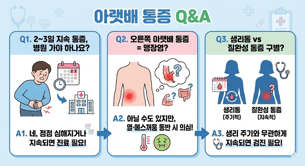 Q1. 아랫배 통증이 며칠 계속되면 병원에 가야 하나요?