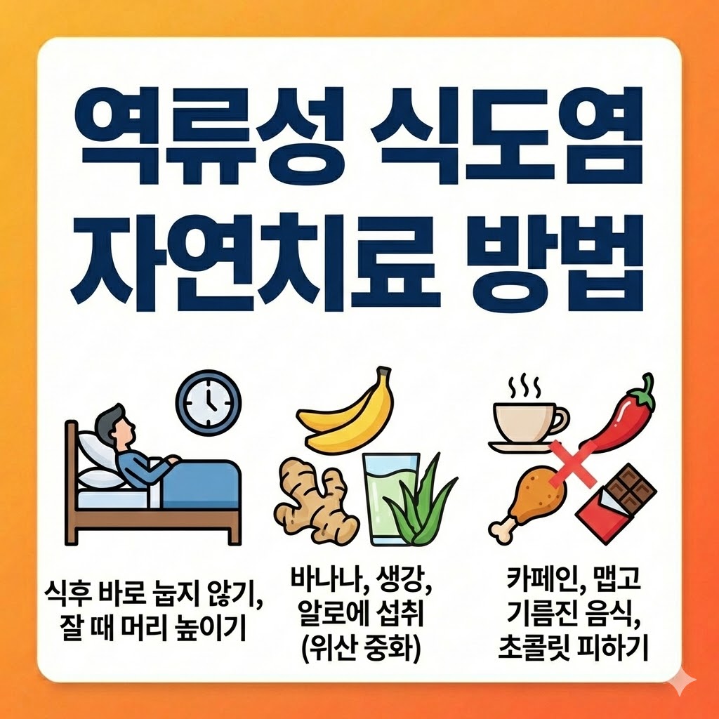 진합니다. 명상이나 심호흡을 통해 자율신경의 균형을 잡는 것이 정신적인 역류성 식도염 자연치료 방법이 될 수 있습니다. 더불어 술과 담배는 식도 괄약근을 직접적으로 이완시키므로 반드시 끊어야 합니다. 스스로 몸을 아끼고 관리하는 이러한 역류성 식도염 자연치료 방법들을 꾸준히 병행한다면 약물 없이도 건강한 소화 기관을 되찾을 수 있을 것입니다.